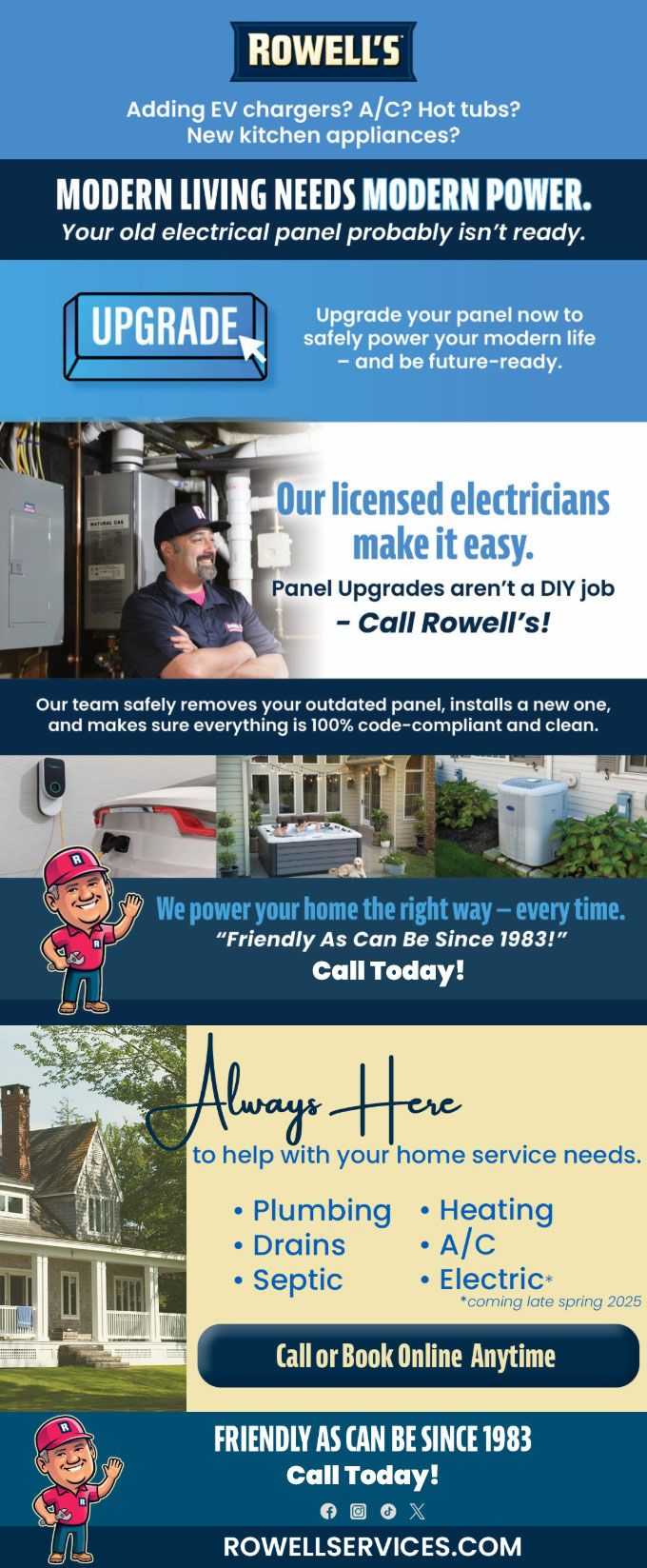 Our licensed electricians make it easy. Panel upgrades aren't a DIY job - Call Rowell's!