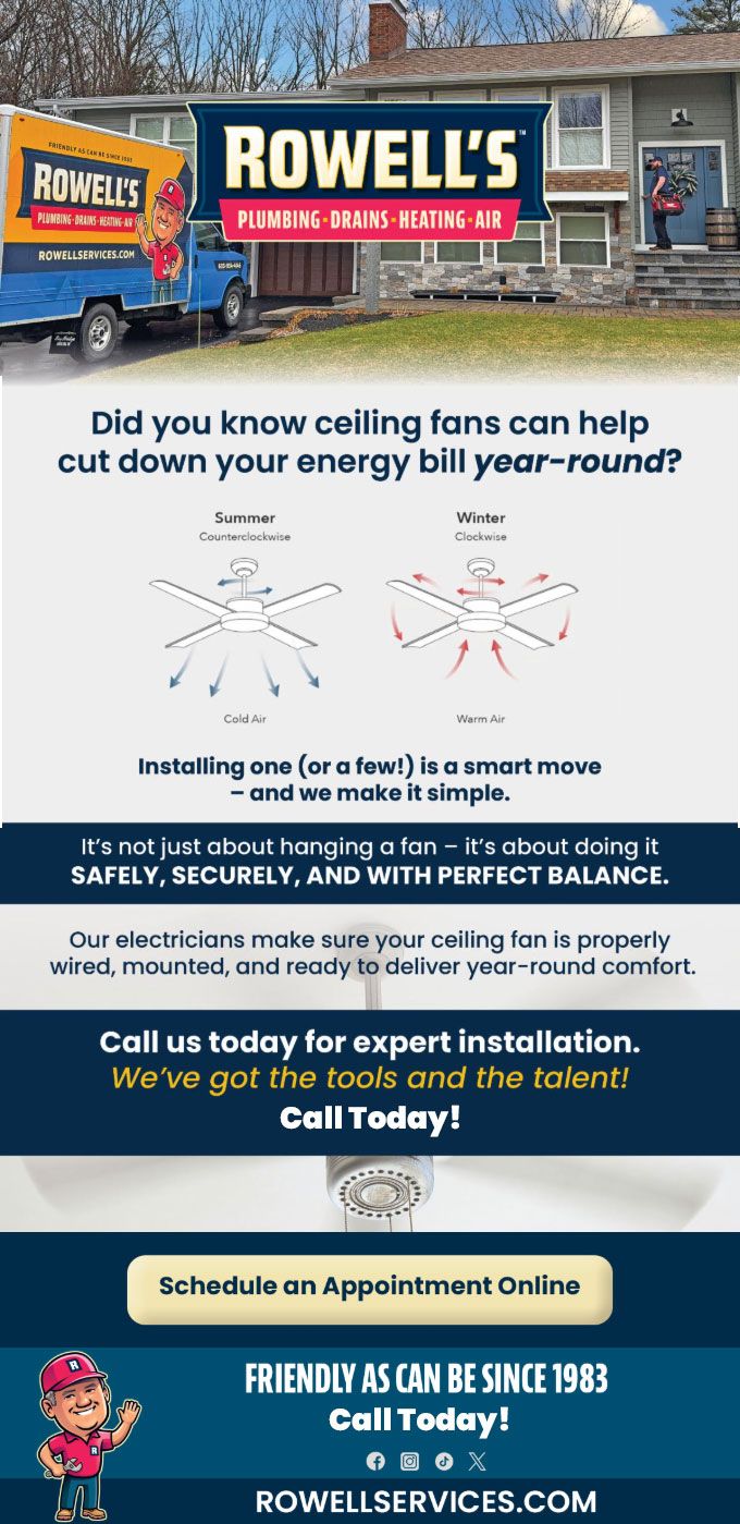 "Friendly As Can Be Since 1983!" When you need help with your plumbing, drains, heating, cooling or electrical in Farmington, you can always rely on Rowell's Services! Call us now or book online!