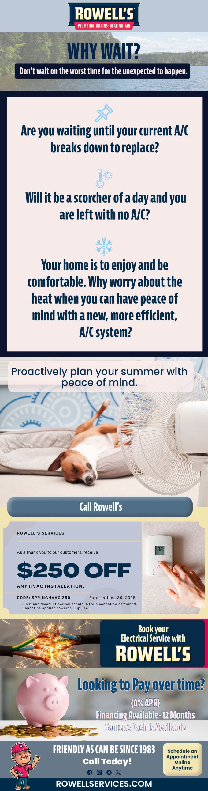 "Friendly As Can Be Since 1983!" When you need help with your plumbing, drains, heating, cooling or electrical in Farmington, you can always rely on Rowell's Services! Call us now or book online!
