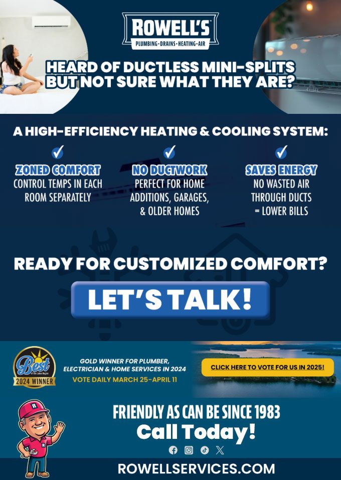 "Friendly As Can Be Since 1983!" When you need help with your plumbing, drains, heating, cooling or electrical in Farmington, you can always rely on Rowell's Services! Call us now or book online!