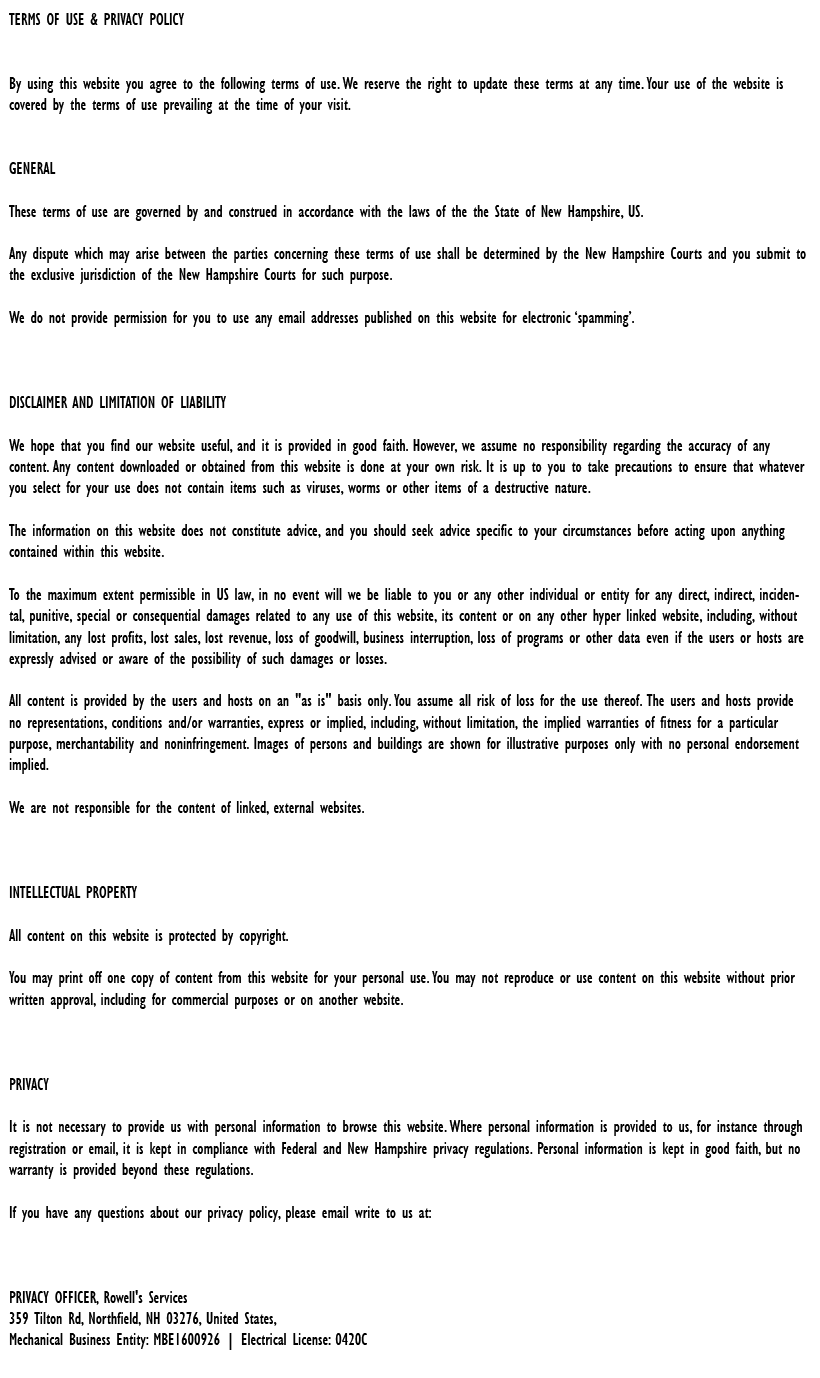 "Friendly As Can Be Since 1983!" When you need help with your plumbing, drains, heating, cooling or electrical in Farmington, you can always rely on Rowell's Services! Call us now or book online!